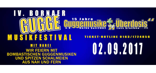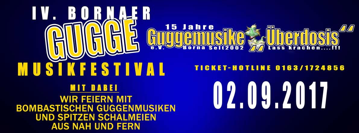 Großes Guggemusik Festival Haltet Euch am 18. Juni frei wenn wir und unsere Gäste es krachen lassen . Achtung Kartenvorverkauf gestartet – greift schnell zu Ticket – Hotline : 01577 44 58 578...
